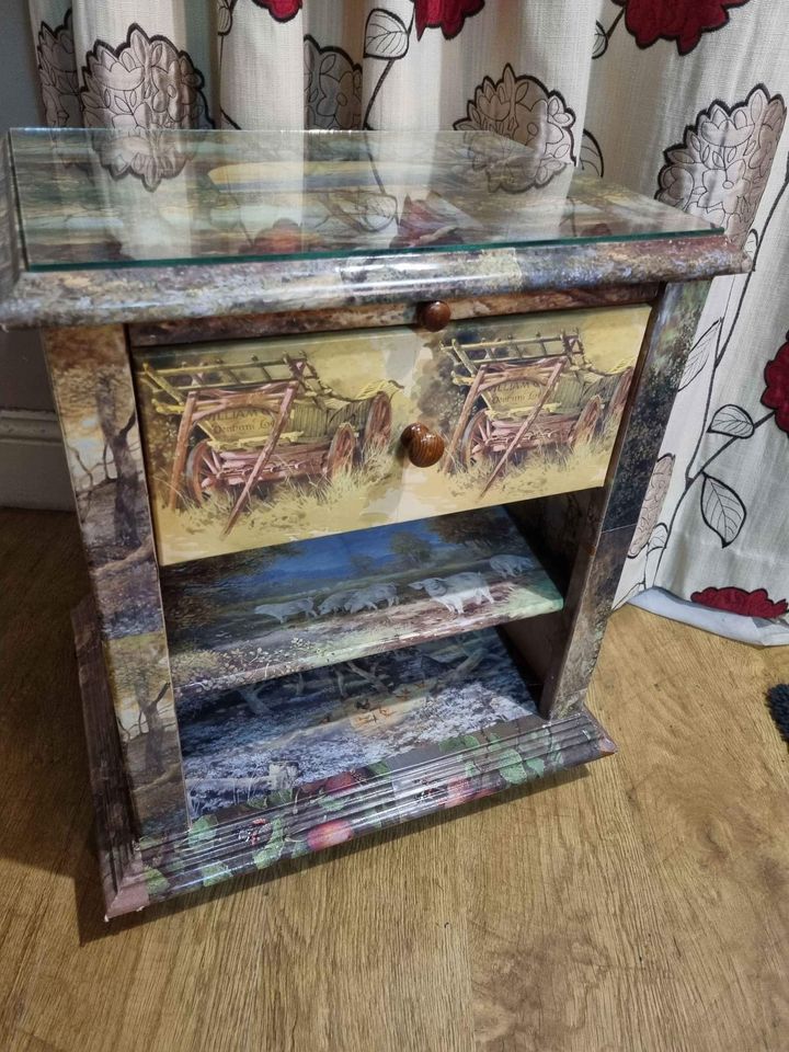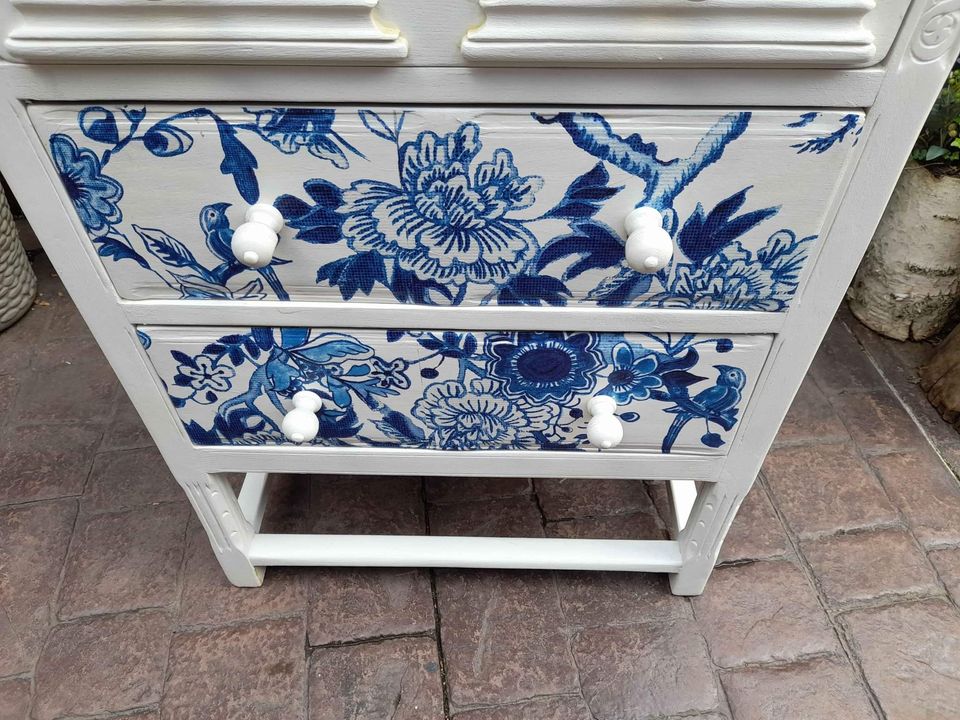 Découpage involves cutting out pictures, gluing them decorayively to everyday useful items, furniture, china etc. and then coating with layers of varnish for a long lasting and useable finish.