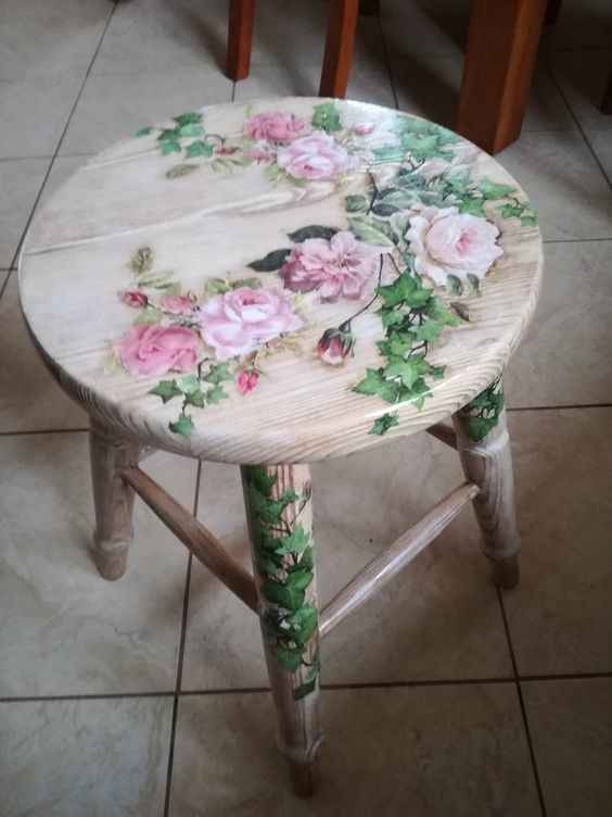 Découpage: the Art of cutting out pictures, gluing them to everyday useful items, furniture, china etc. and coating with layers of varnish for a long lasting Attractive and useable finish.